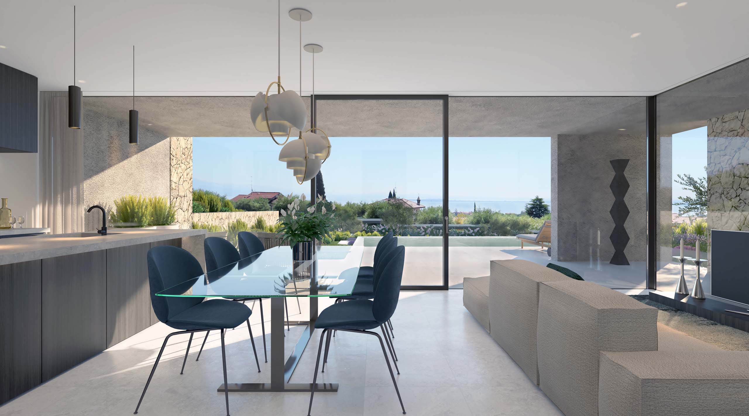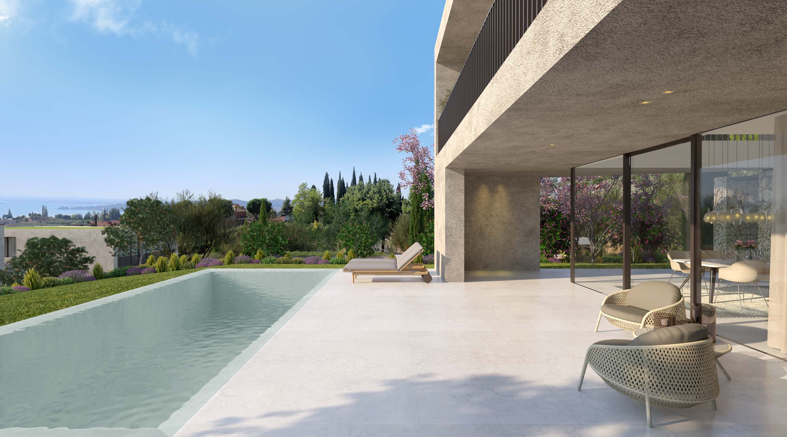 Una villa privata, la quintessenza della privacy. Spazi luminosi, piscina, giardino e vista da sogno sul Lago di Garda.